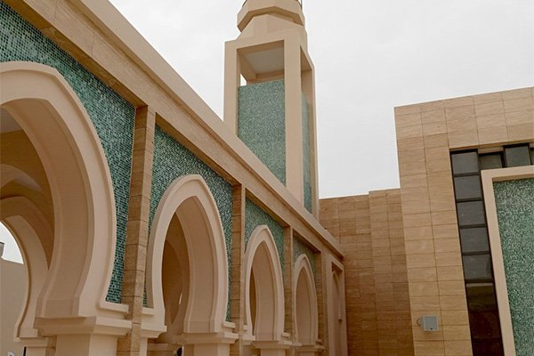 The Al Noor Mosque in Madinaty, New Cairo, was developed by Talaat Mostafa Group and executed by Atrium, with consultancy from Moharram Bakhoum. Built using GRC and GRP materials, the mosque spans a total area of 2,900 square meters. The project was successfully completed within six months, fulfilling all requirements and delivering the expected outcomes on time, while reflecting architectural beauty and spiritual significance.