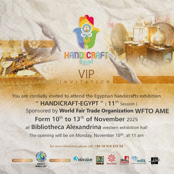 Mena country for contracting is pleased to announce its participation as an official sponsor in the Egyptian Handicrafts Exhibition (Handicraft Egypt in its 11th edition, held at the Bibliotheca Alexandrina – مكتبة الاسكندرية – Western Exhibition Hall, from November 10 to 13, 2025, in partnership with the World Fair Trade Organization – Africa & Middle East (WFTO AME).